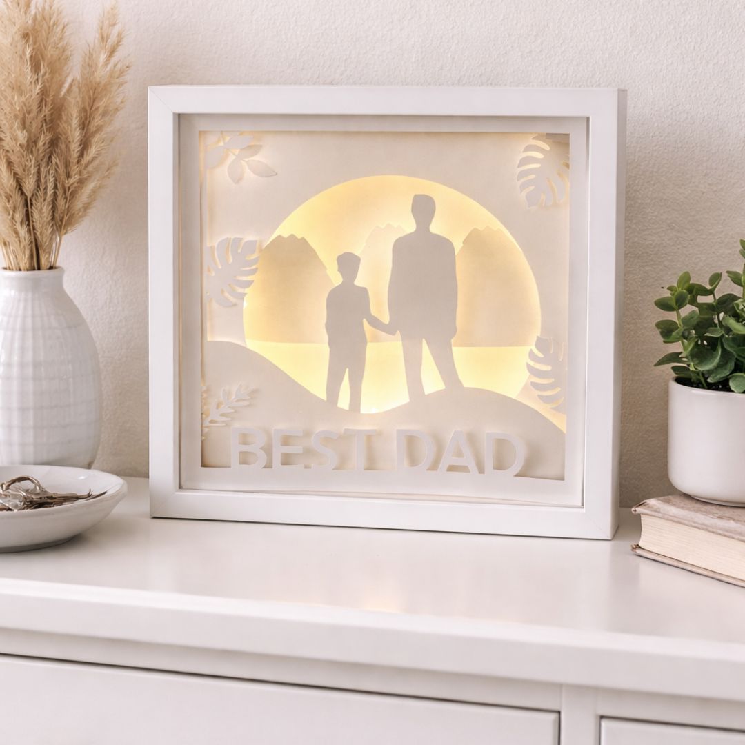 O tamanho original é 28cm (A) x 28cm (L), uma lembrança para o dia dos pais.